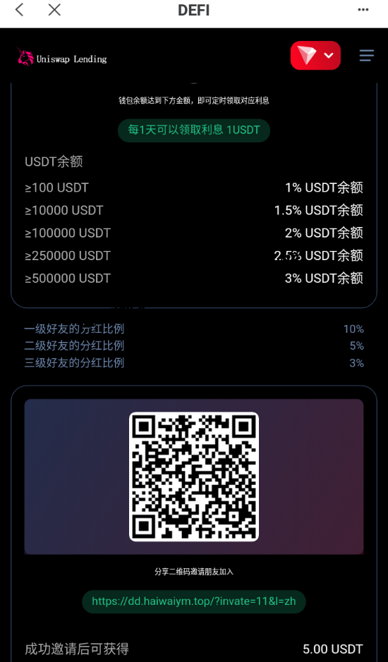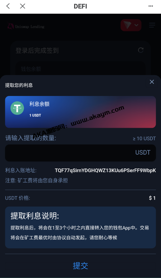 质押生息系统,可正常运营,支持多国语言 用户前端授权登录,自动获取他钱包余额显示在前端 根据他钱包余额计算利息,每天自动发放,可养鱼 声明:本站所有文章,如无特殊说明或标注,均为本站原创发布。任何个人或组织,在未征得本站同意时,禁止复制、盗用、采集、发布本站内容到任何网站、书籍等各类媒体平台。如若本站内容侵犯了原著者的合法权益,可联系我们进行处理。