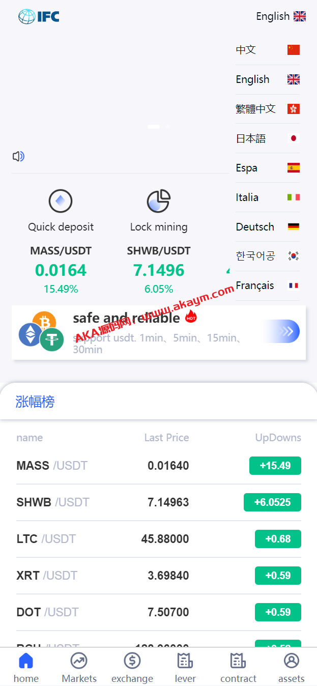 此套是以前的一套交易所二开的UI,支持锁仓挖矿、币币、法币、秒合约,