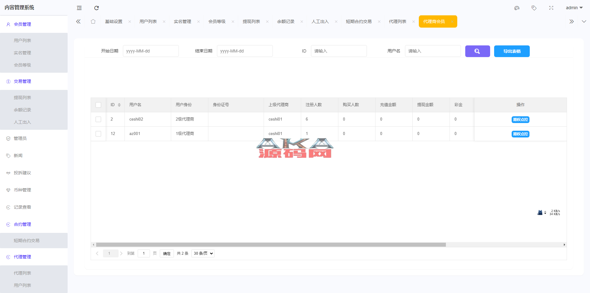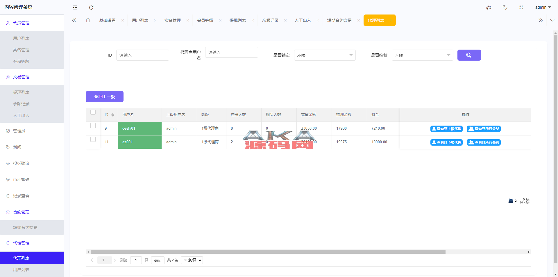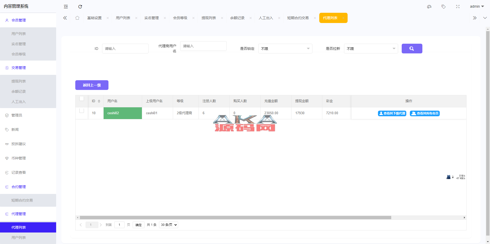 6.支持代理后台,增加代理线各项数据展示列表